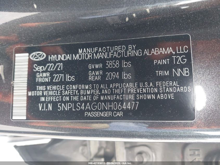 2022 HYUNDAI ELANTRA - 5NPLS4AG0NH064477, цвет - Серый, 2.0, Бензин, Передний привод из США