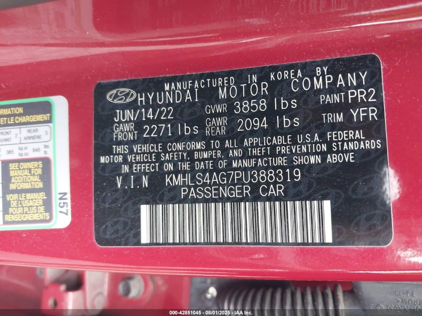 2023 HYUNDAI ELANTRA - KMHLS4AG7PU388319, цвет - Красный, 2.0, Бензин, Передний привод из США