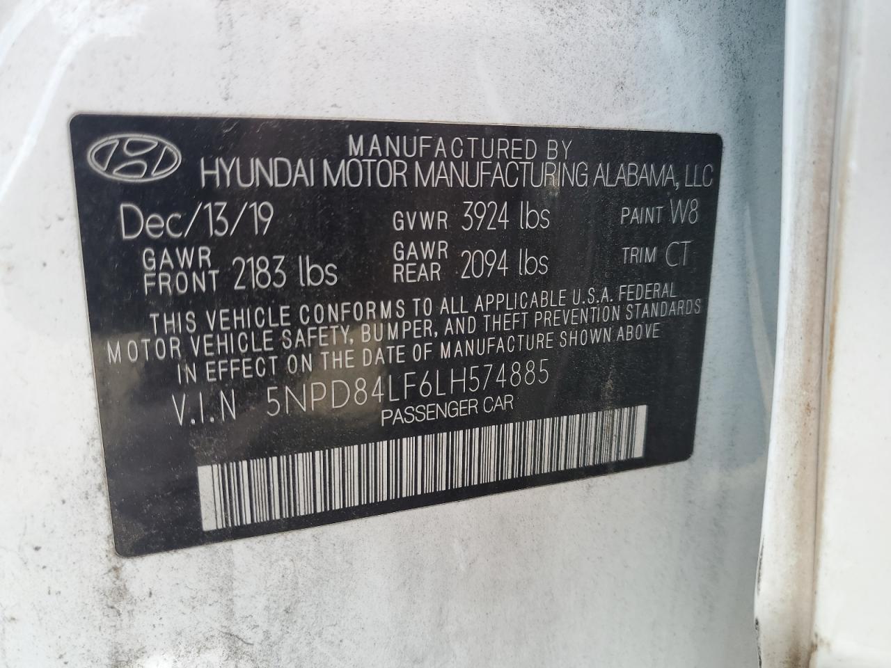 2020 HYUNDAI ELANTRA - 5NPD84LF6LH574885, цвет - Белый, 2.0, Бензин, из США