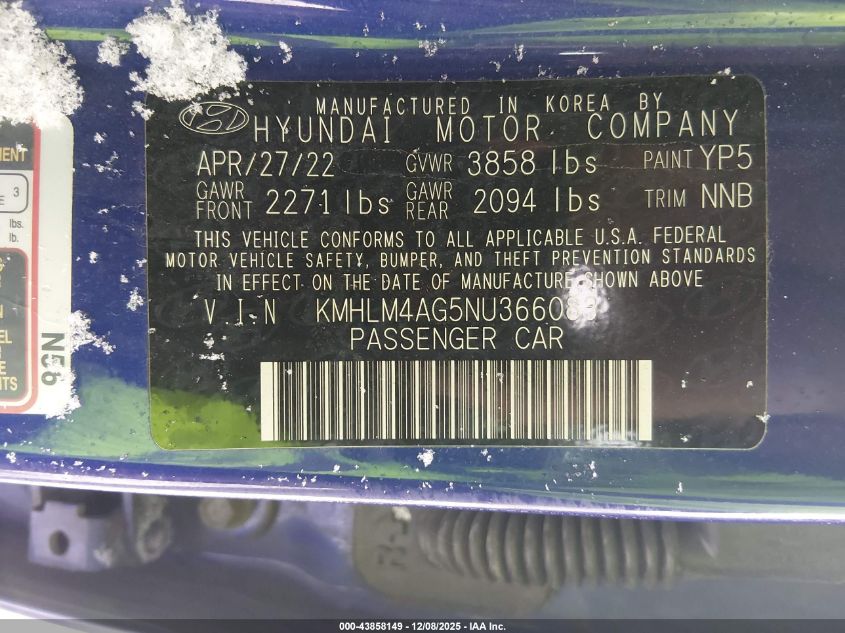 2022 HYUNDAI ELANTRA - KMHLM4AG5NU366083, цвет - Синий, 2.0, Бензин, Передний привод из США