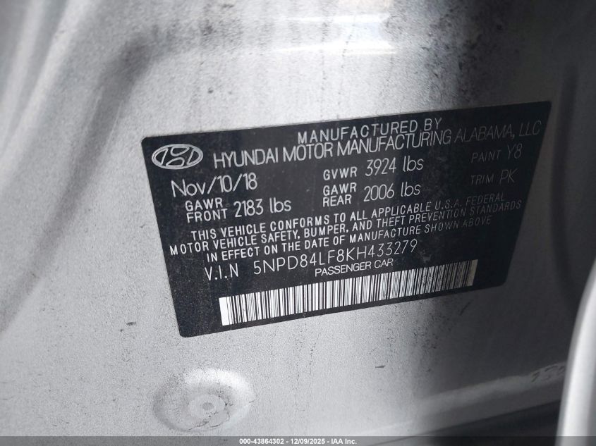 2019 HYUNDAI ELANTRA - 5NPD84LF8KH433279, цвет - Серебряный, 2.0, Бензин, Передний привод из США