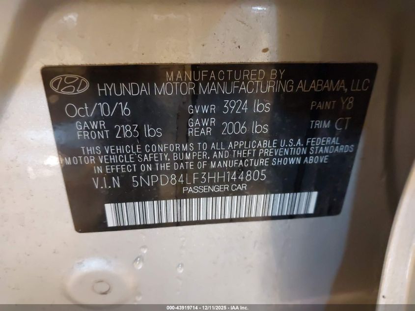 2017 HYUNDAI ELANTRA - 5NPD84LF3HH144805, цвет - Серебряный, 2.0, Бензин, Передний привод из США