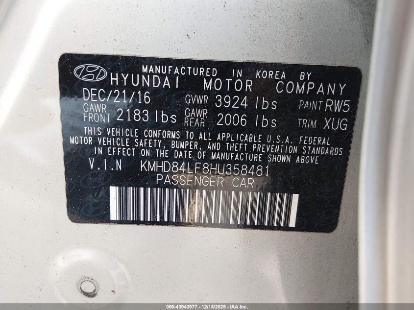 2017 HYUNDAI ELANTRA - KMHD84LF8HU358481, цвет - Бежевый, 2.0, Бензин, Передний привод из США