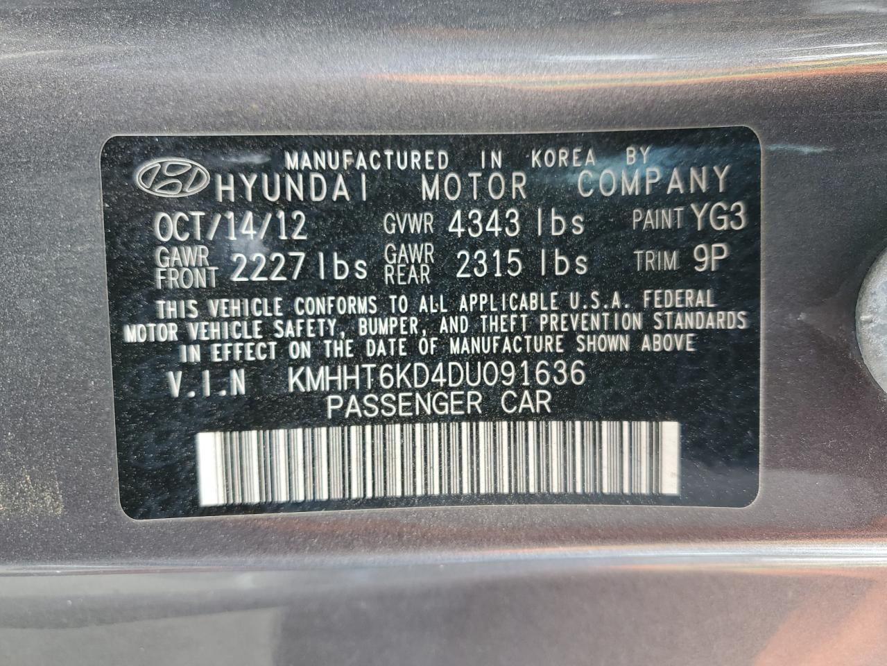 Цвет СерыйЦилиндры 4Привод Задний приводVIN KMHHT6KD4DU091636Состояние Заводится и едет (проверено)Повреждения НезначительныеДата аукциона 2025-10-07