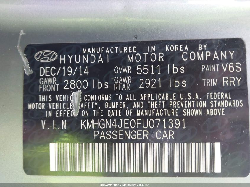 2015 HYUNDAI GENESIS - KMHGN4JE0FU071391, цвет - Синий, 3.8, Бензин, Полный привод из США