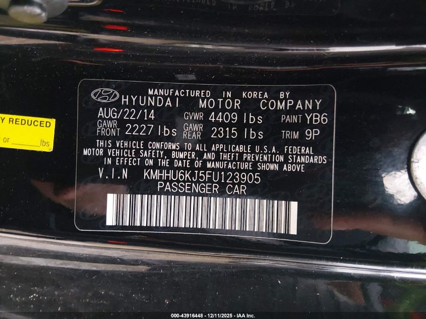 2015 HYUNDAI GENESIS - KMHHU6KJ5FU123905, цвет - Черный, 3.8, Бензин, Задний привод из США