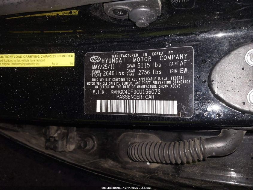 2012 HYUNDAI GENESIS - KMHGC4DF9CU156073, цвет - Черный, 4.6, Бензин, Задний привод из США