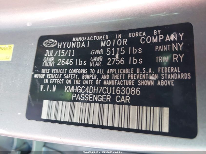 2012 HYUNDAI GENESIS - KMHGC4DH7CU163086, цвет - Серебряный, 5.0, Бензин, Задний привод из США