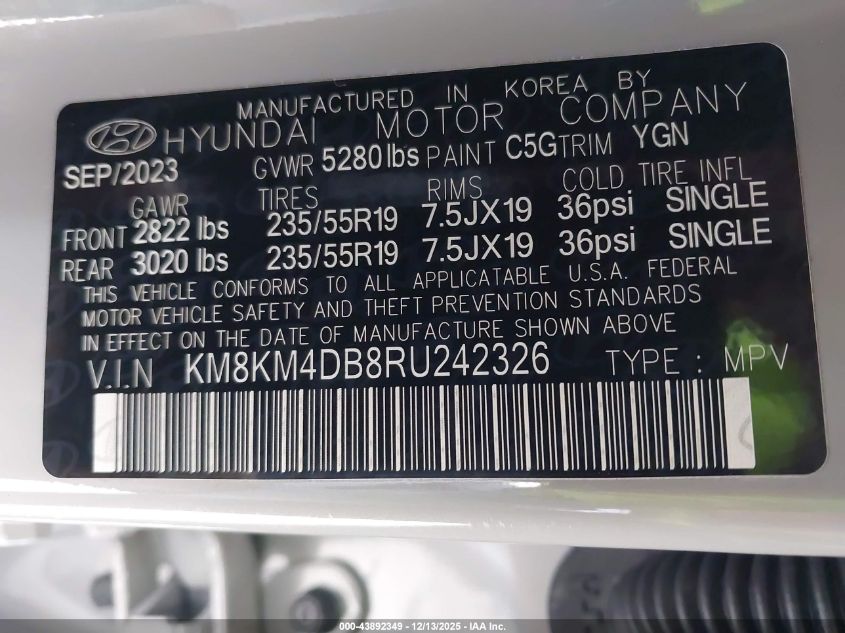 2024 HYUNDAI IONIQ 5 - KM8KM4DB8RU242326, цвет - Серый, 0.0, Электрический, из США