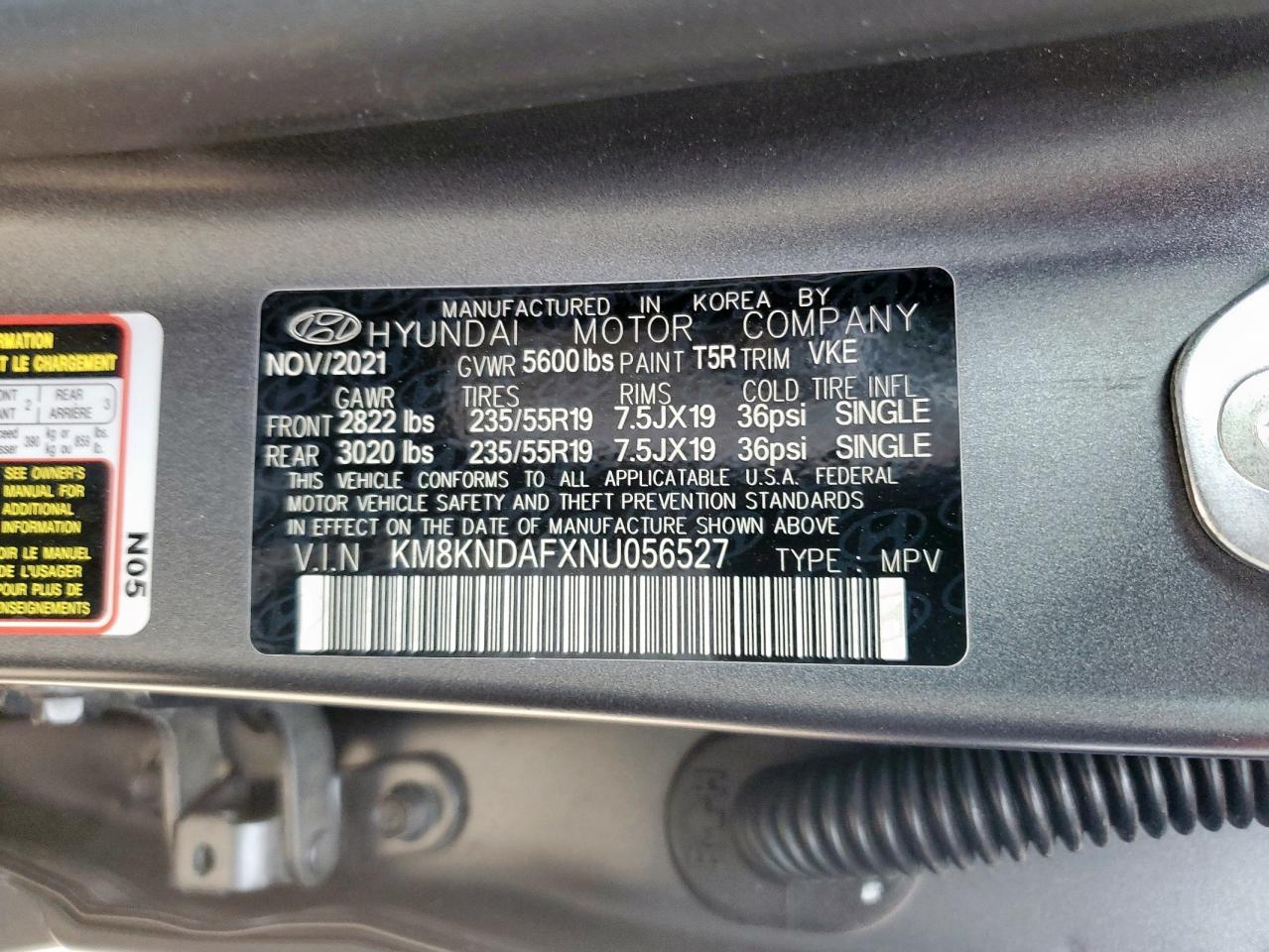 Цвет СерыйПривод Полный приводVIN KM8KNDAFXNU056527Состояние Заводится и едет (проверено)Повреждения НезначительныеДата аукциона 2025-10-09