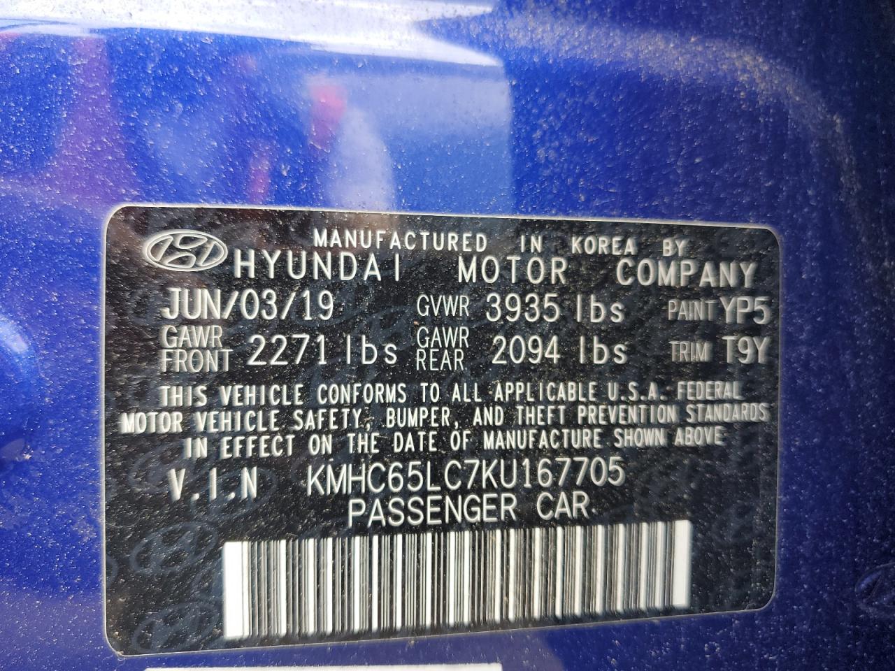 2019 HYUNDAI IONIQ - KMHC65LC7KU167705, цвет - Синий, 1.6, Гибрид, из США