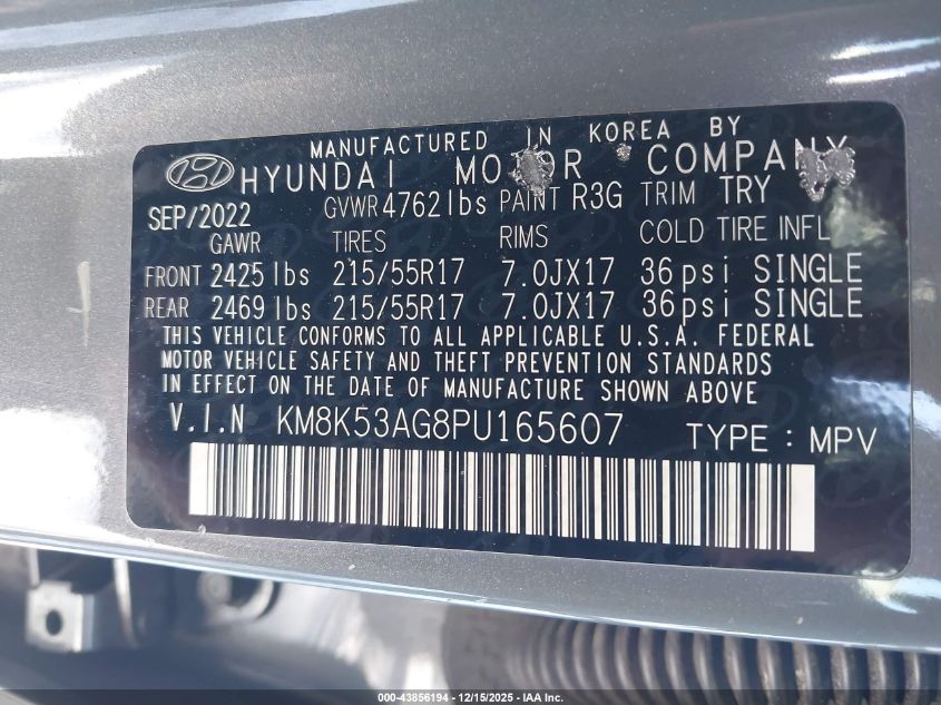 2023 HYUNDAI KONA - KM8K53AG8PU165607, цвет - Серый, 0.0, Электрический, Передний привод из США