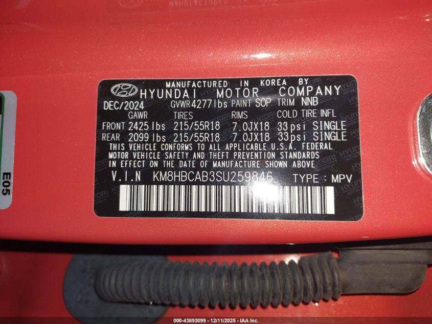 2025 HYUNDAI KONA - KM8HBCAB3SU259846, цвет - Апельсиновый, 2.0, Бензин, Полный привод из США