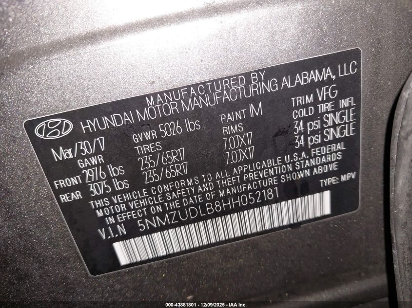Цвет СерыйЦилиндры 4Привод Полный приводVIN 5NMZUDLB8HH052181Состояние Заводится и едет (проверено)Повреждения Правая сторона