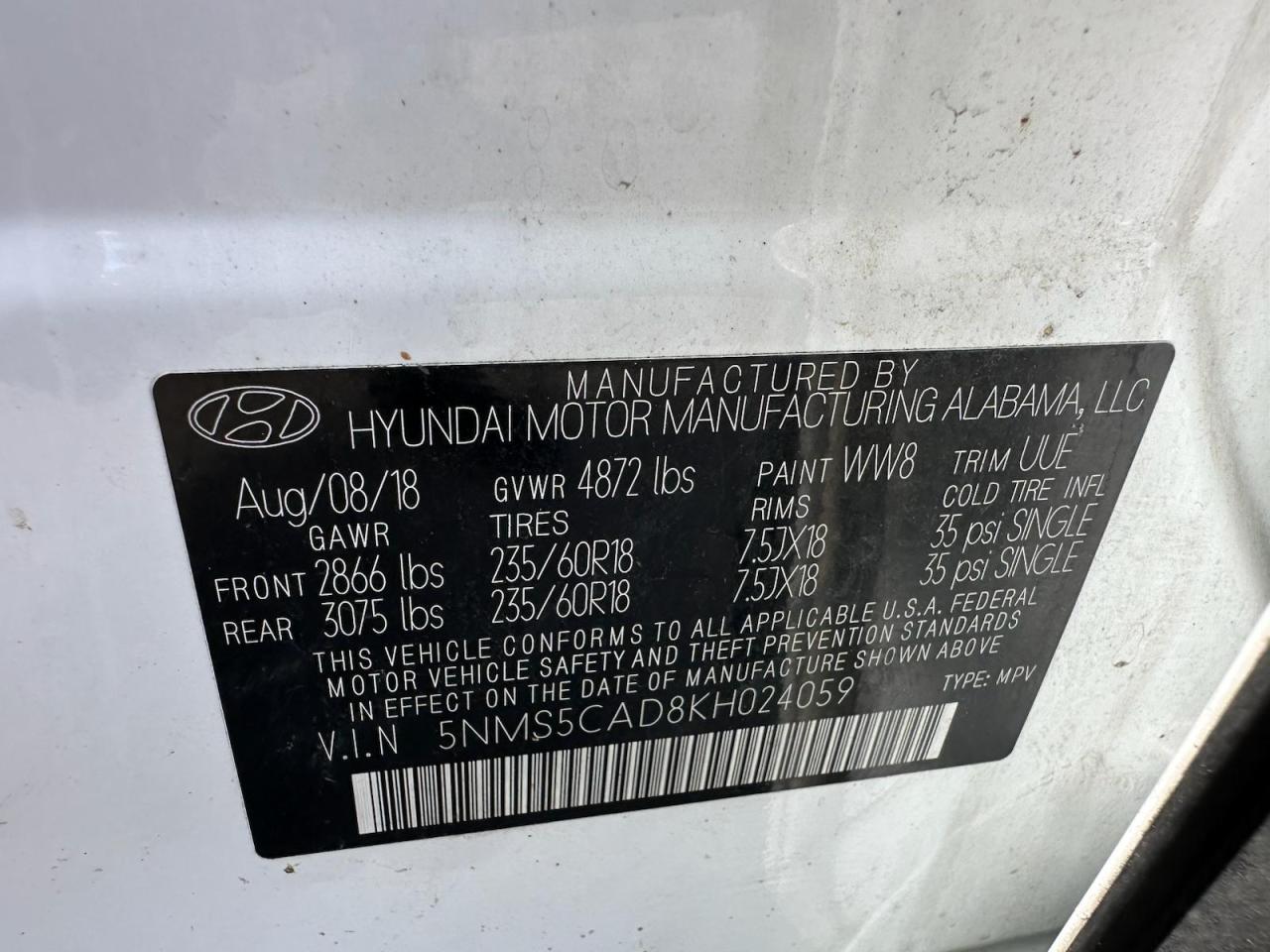 2019 HYUNDAI SANTA FE - 5NMS5CAD8KH024059, цвет - Белый, 2.4, Бензин, Полный привод из США