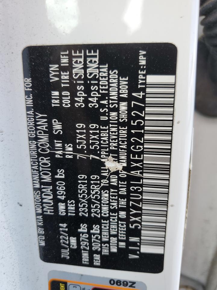 2014 HYUNDAI SANTA FE - 5XYZU3LAXEG215274, цвет - Белый, 2.0, Бензин, из США