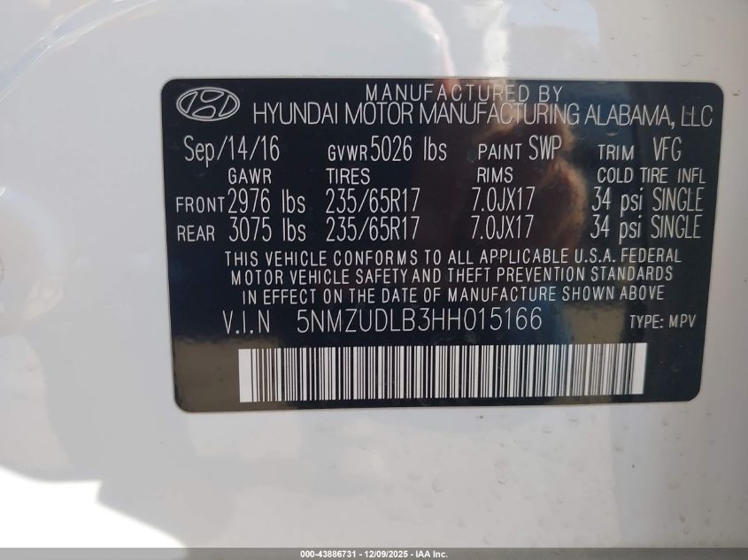 Цвет БелыйЦилиндры 4Привод Полный приводVIN 5NMZUDLB3HH015166Состояние Заводится и едет (проверено)Повреждения Передняя и задняя