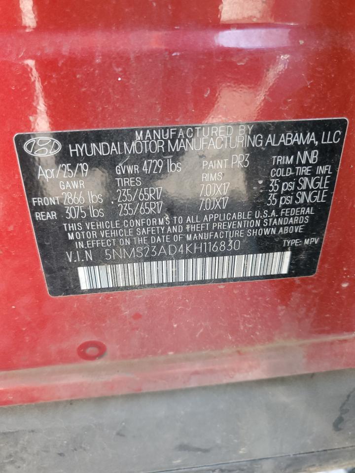 2019 HYUNDAI SANTA FE - 5NMS23AD4KH116830, цвет - Красный, 2.4, Бензин, из США