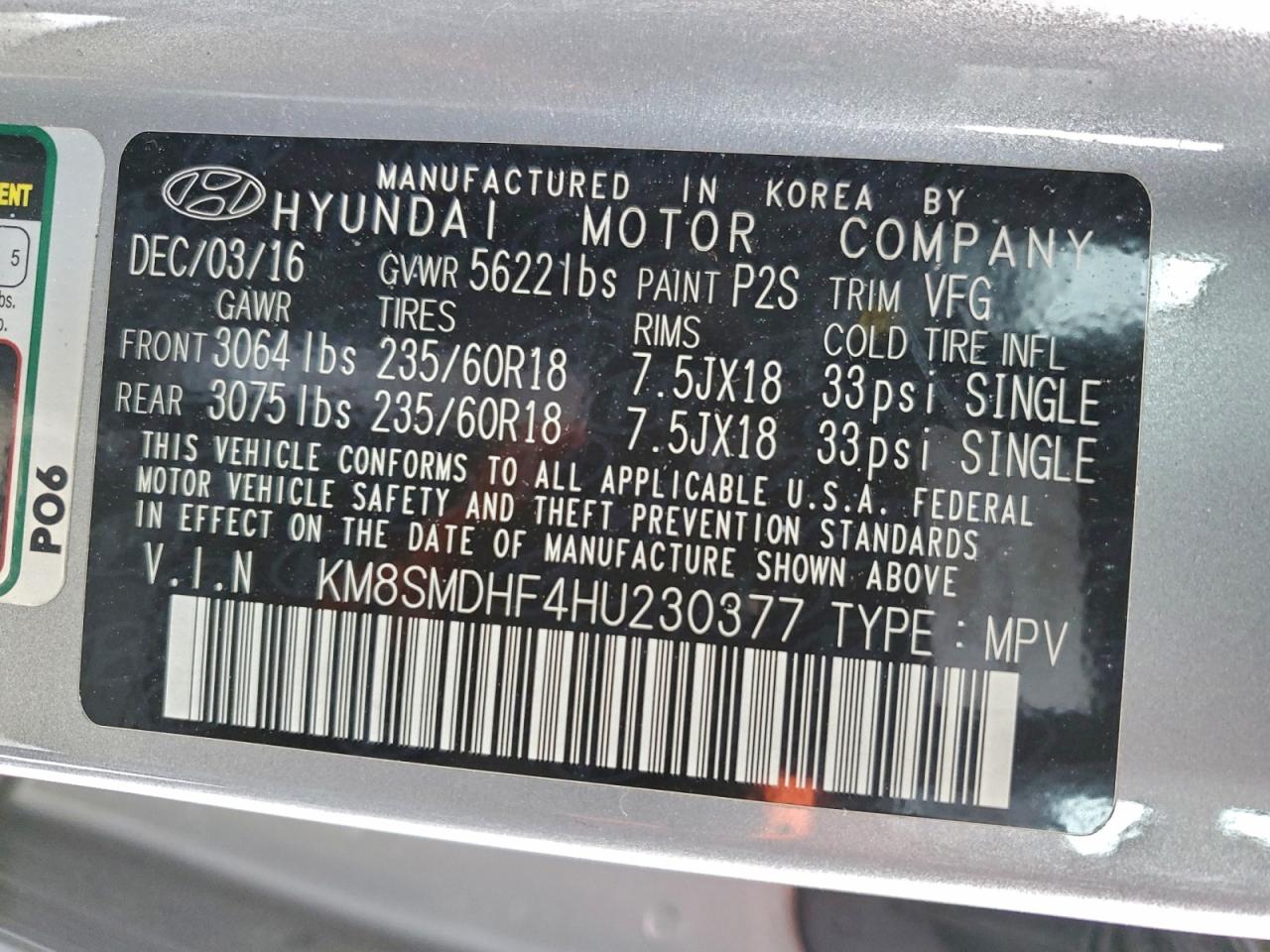 2017 HYUNDAI SANTA FE - KM8SMDHF4HU230377, цвет - Серебряный, 3.3, Бензин, Полный привод из США