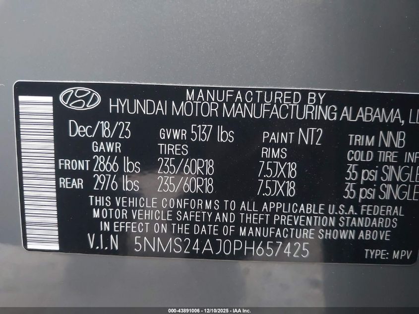 Цвет СерыйЦилиндры 4Привод Передний приводVIN 5NMS24AJ0PH657425Состояние Заводится и едет (проверено)Повреждения Передняя и задняя