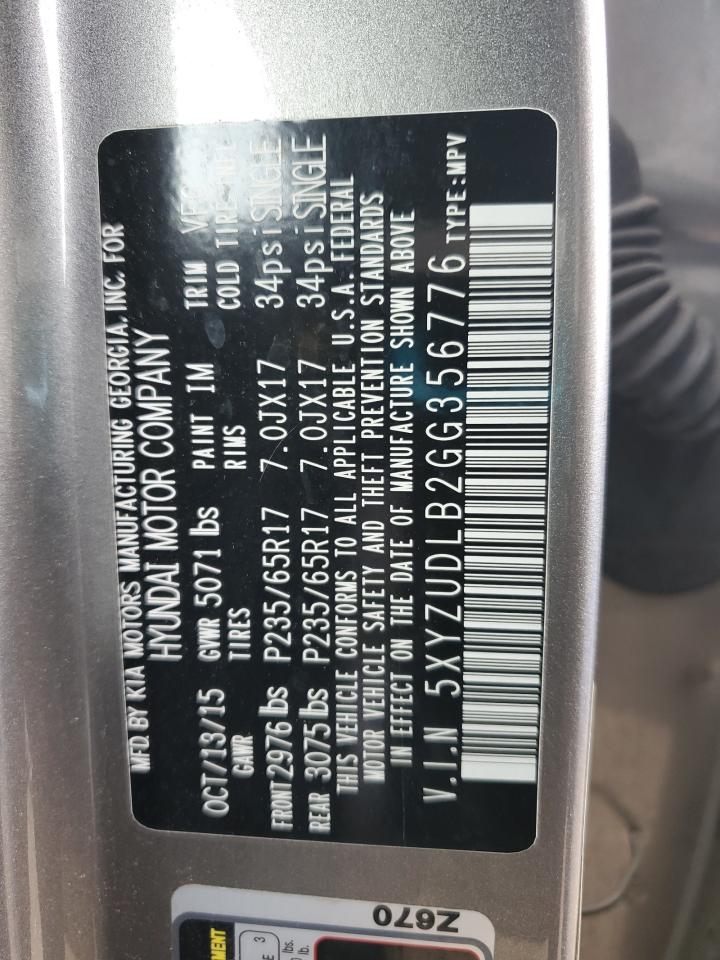 2016 HYUNDAI SANTA FE - 5XYZUDLB2GG356776, цвет - Серый, 2.4, Бензин, Полный привод из США
