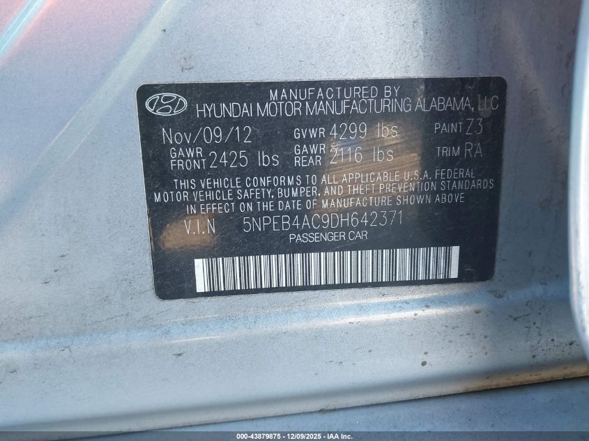 2013 HYUNDAI SONATA - 5NPEB4AC9DH642371, цвет - Бирюзовий, 2.4, Бензин, Передний привод из США