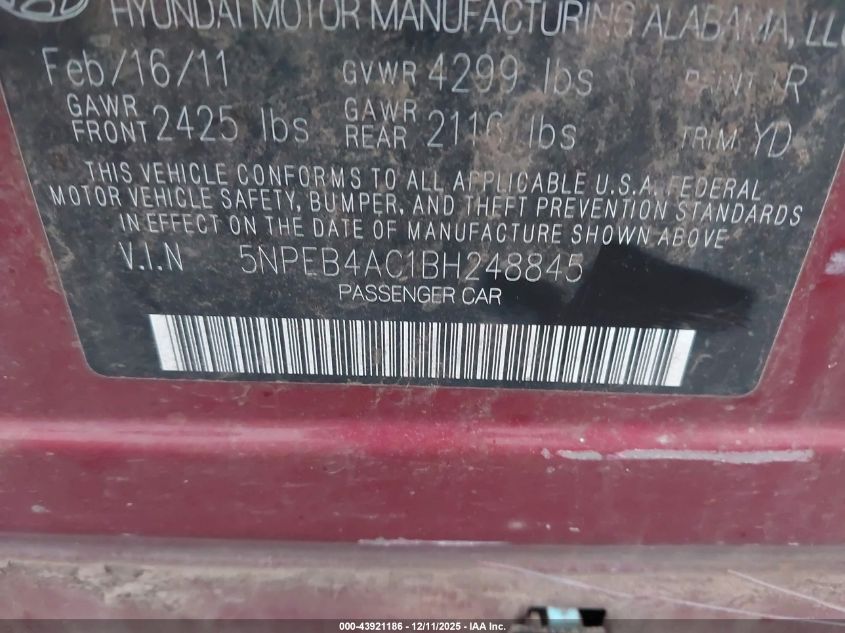 2011 HYUNDAI SONATA - 5NPEB4AC1BH248845, цвет - Красный, 2.4, Бензин, Передний привод из США