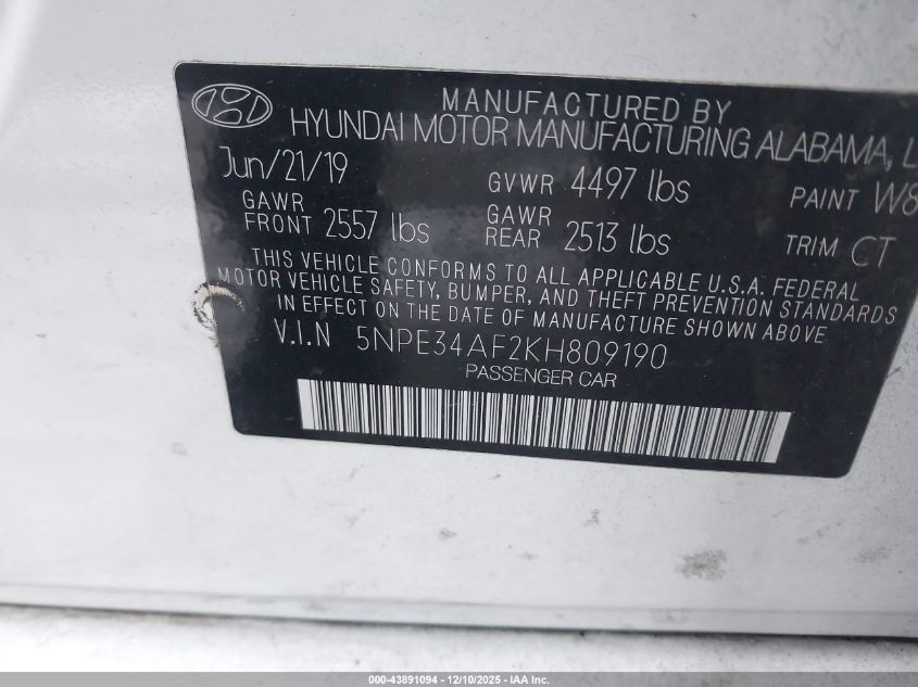 2019 HYUNDAI SONATA LIMITED
