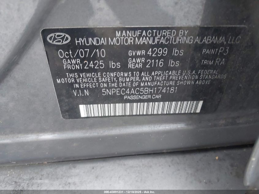 2011 HYUNDAI SONATA SE