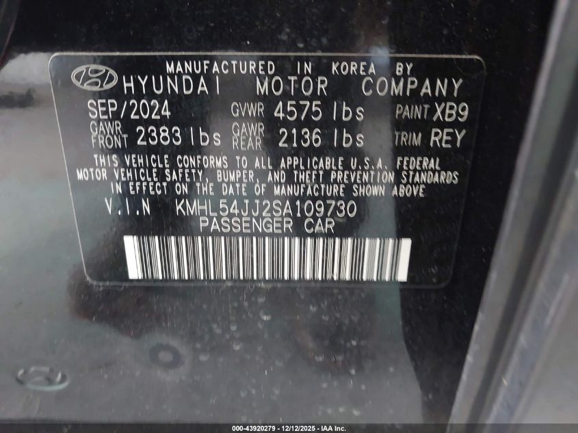 2025 HYUNDAI SONATA - KMHL54JJ2SA109730, цвет - Черный, 2.0, Гибрид, Передний привод из США