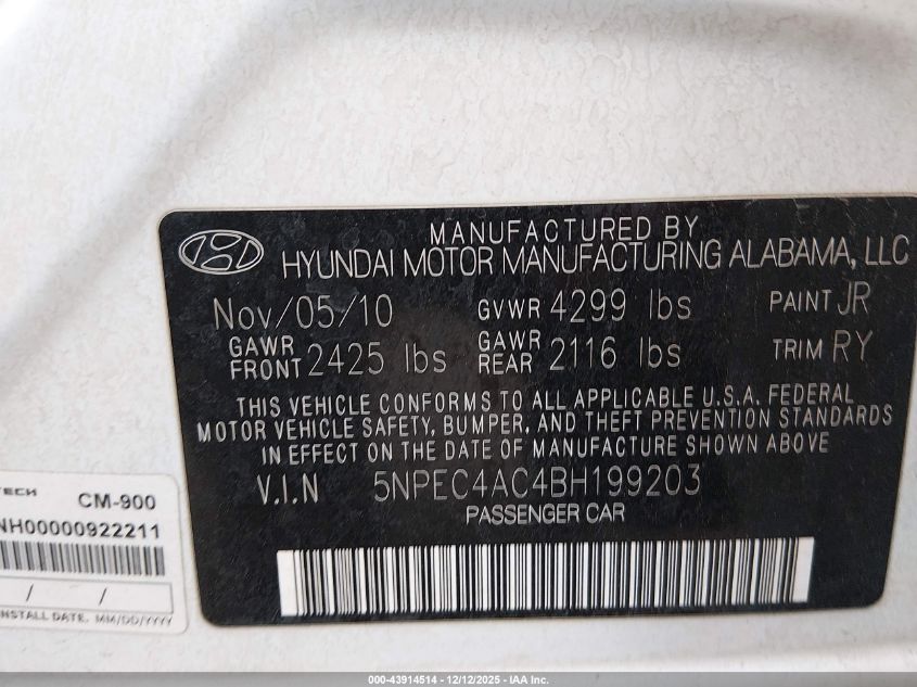 2011 HYUNDAI SONATA SE