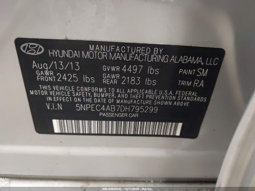2013 HYUNDAI SONATA - 5NPEC4AB7DH795299, цвет - Серебряный, 2.0, Бензин, Передний привод из США