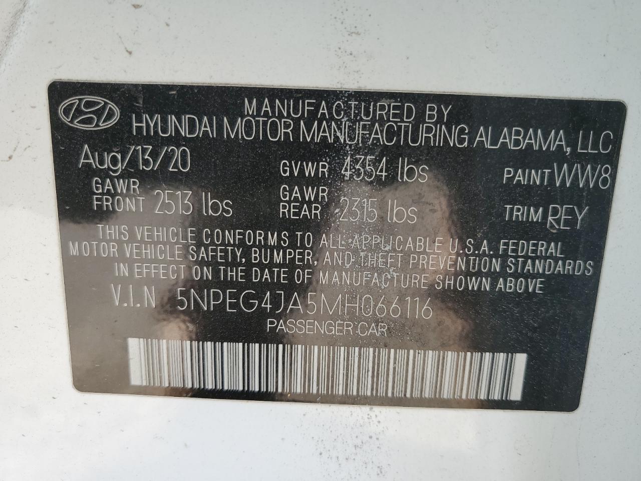 2021 HYUNDAI SONATA - 5NPEG4JA5MH066116, цвет - Белый, 2.5, Бензин, из США