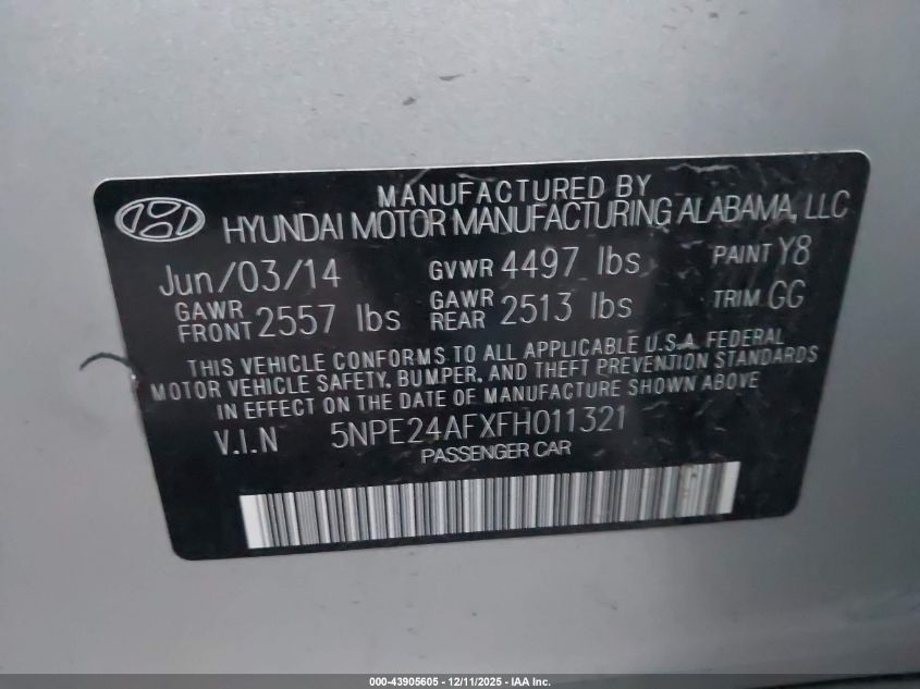 2015 HYUNDAI SONATA ECO