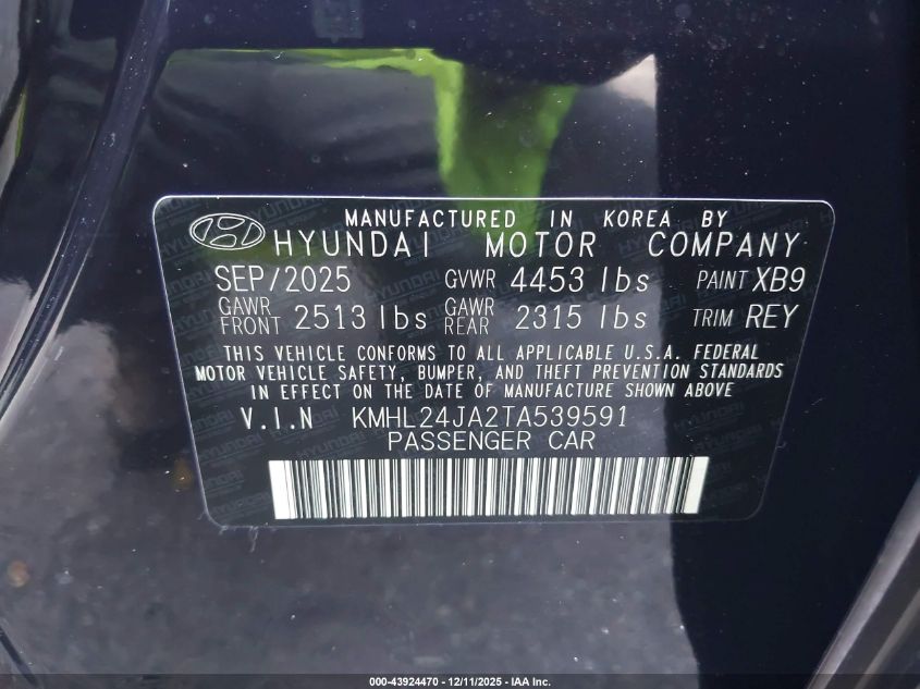 2026 HYUNDAI SONATA - KMHL24JA2TA539591, цвет - Синий, 2.5, Бензин, Передний привод из США