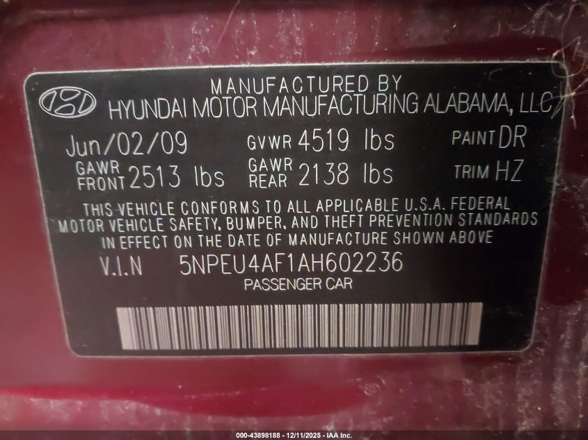 Цвет БордовыйЦилиндры 6Привод Передний приводVIN 5NPEU4AF1AH602236Состояние Заводится и едет (проверено)Повреждения Обычный износ