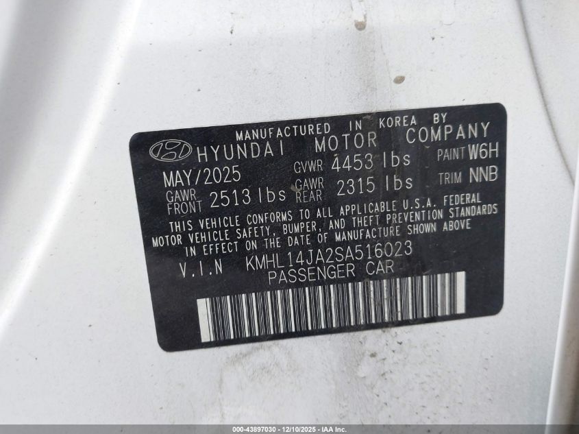 2025 HYUNDAI SONATA - KMHL14JA2SA516023, цвет - Белый, 2.5, Бензин, Передний привод из США