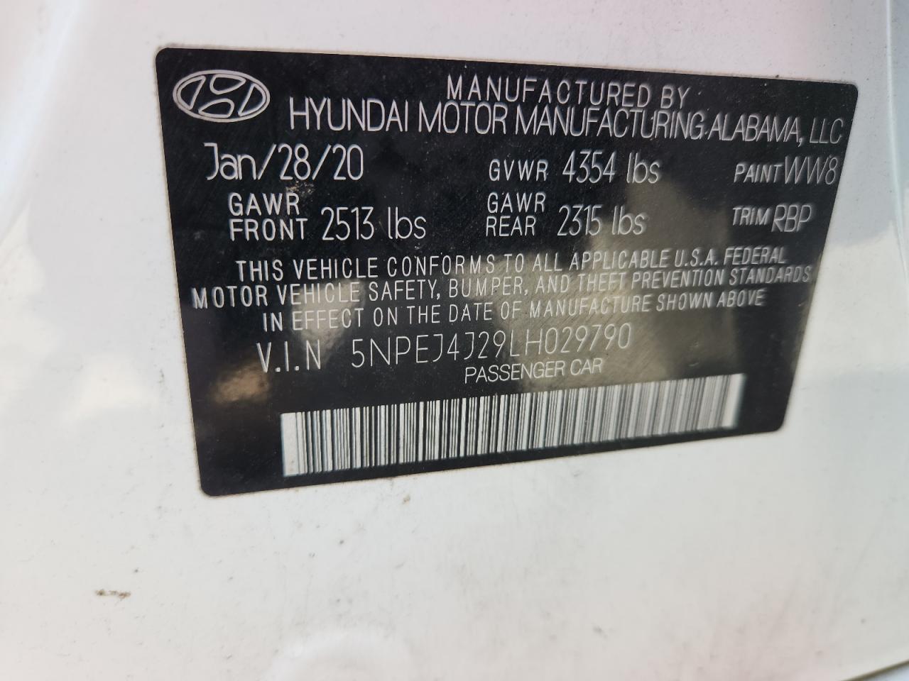 2020 HYUNDAI SONATA - 5NPEJ4J29LH029790, цвет - Белый, 1.6, Бензин, из США