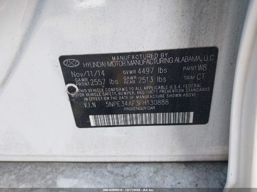 2015 HYUNDAI SONATA - 5NPE34AF3FH130888, цвет - Белый, 2.4, Бензин, Передний привод из США