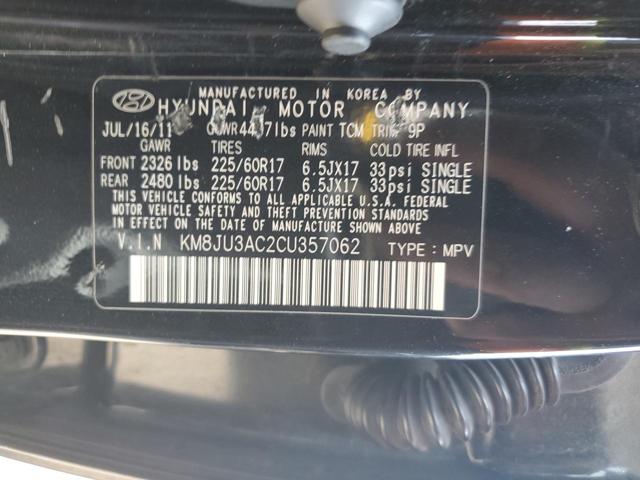 2012 HYUNDAI TUCSON - KM8JU3AC2CU357062, цвет - Черный, 2.4, Бензин, из США