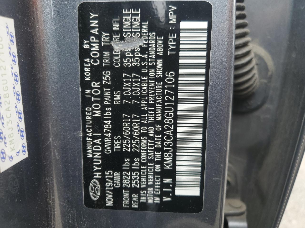 2016 HYUNDAI TUCSON - KM8J3CA28GU127106, цвет - Серый, 1.6, Бензин, Полный привод из США