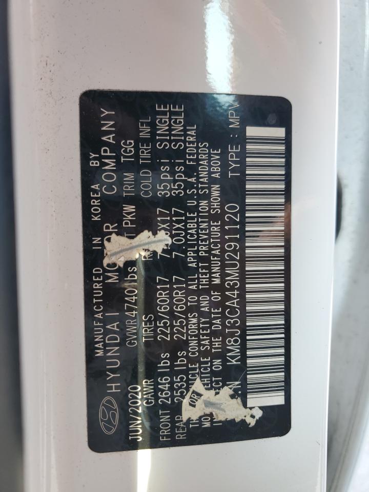 2021 HYUNDAI TUCSON - KM8J3CA43MU291120, цвет - Белый, 2.0, Бензин, Полный привод из США