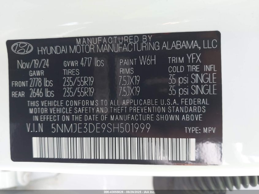 2025 HYUNDAI TUCSON - 5NMJE3DE9SH501999, цвет - Белый, 2.5, Бензин, Передний привод из США