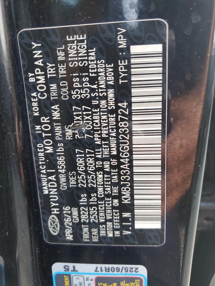 2016 HYUNDAI TUCSON - KM8J33A46GU238724, цвет - Черный, 2.0, Бензин, из США