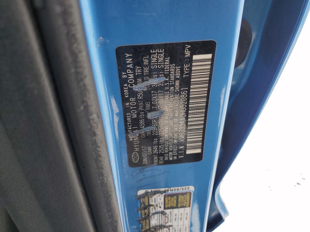 2017 HYUNDAI TUCSON - KM8J33A40HU520861, цвет - Синий, 2.0, Бензин, из США