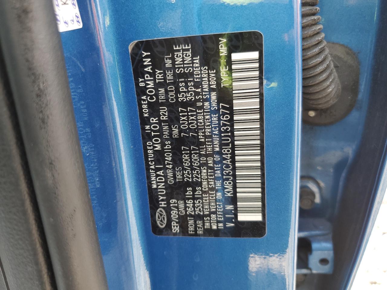 2020 HYUNDAI TUCSON - KM8J3CA48LU137677, цвет - Синий, 2.0, Бензин, Полный привод из США
