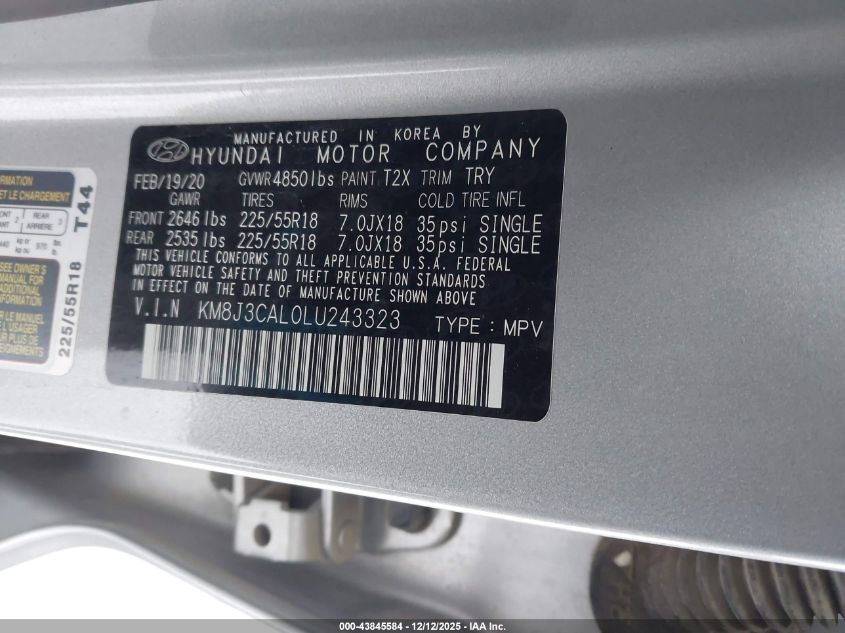 2020 HYUNDAI TUCSON - KM8J3CAL0LU243323, цвет - Серый, 2.4, Бензин, Полный привод из США