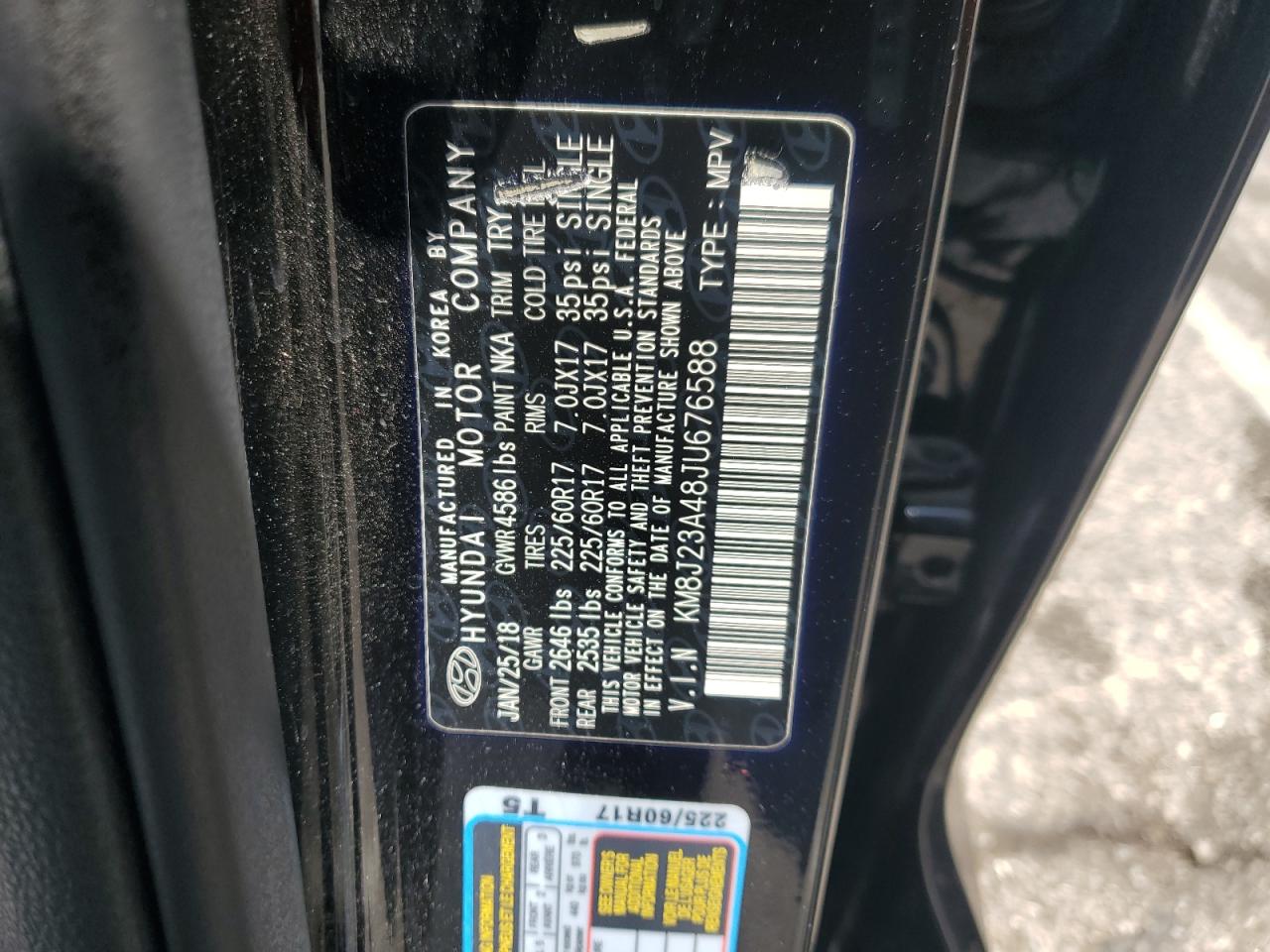 2018 HYUNDAI TUCSON - KM8J23A48JU676588, цвет - Черный, 2.0, Бензин, из США