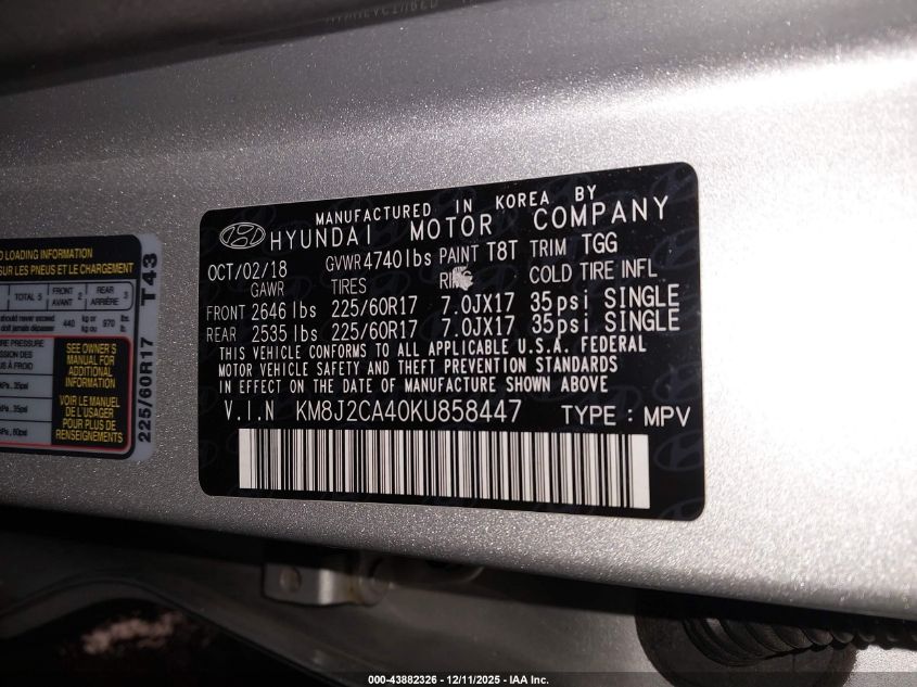 2019 HYUNDAI TUCSON - KM8J2CA40KU858447, цвет - Белый, 2.0, Бензин, Полный привод из США