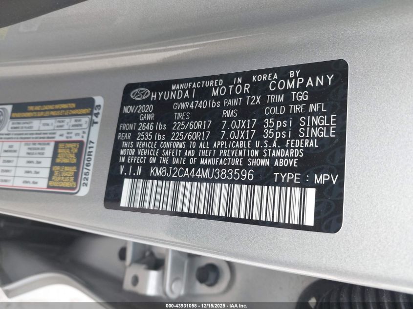 2021 HYUNDAI TUCSON - KM8J2CA44MU383596, цвет - , 2.0, Бензин, Полный привод из США